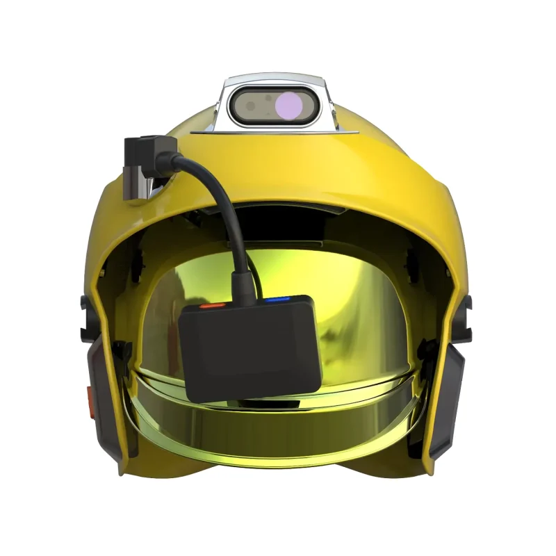 The modern firefighter helmet features a 13MP HD camera with a micro-gimbal for stabilization, providing crystal-clear video streams to command centers in real time. Its thermal imaging capabilities, with a temperature detection range of -20°C to 550°C (optional up to 1500°C / -4°F to 2732°F), allow firefighters to identify heat sources and hazardous zones quickly. High-resolution options of 640×512 or 384×288 ensure precise imaging, even in the most intense heat environments.