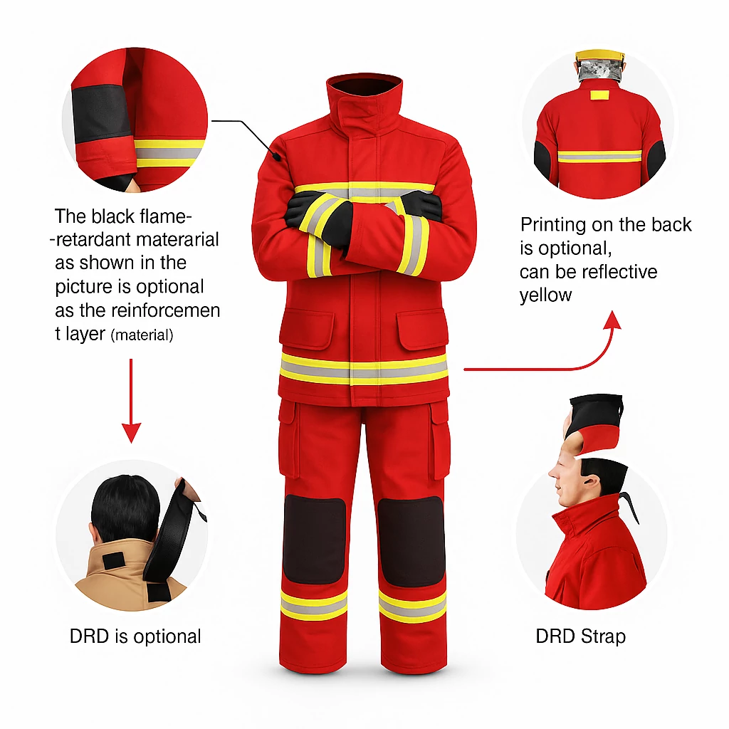 - Suitable for high-rise and underground fire scenarios, offering multilayer protection against heat and radiant flames.